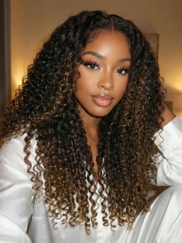 Sunber 7x5 Pre Cut Golden Brown Highlights Kinky Curly Lace Closure Wig With Invisi Drawstring5.0 | 10 reviews-