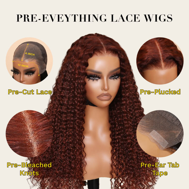 ※Hair Material: Sunber Reddish Brown Jerry Curl 13*4/7*5 Bye Bye Knots Wigs Pre-Plucked Human Hair Wigs