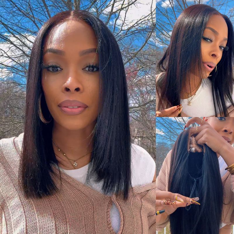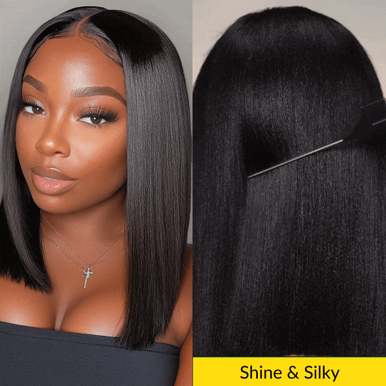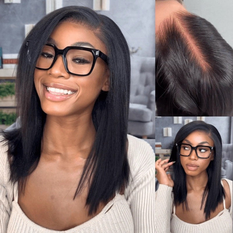 Sunber Blunt Cut Light Yaki Straight 7x5/13x4 Pre-Cut Lace Bye Bye Knots Glueless Bob Wig Pre-plucked Flash Sale
