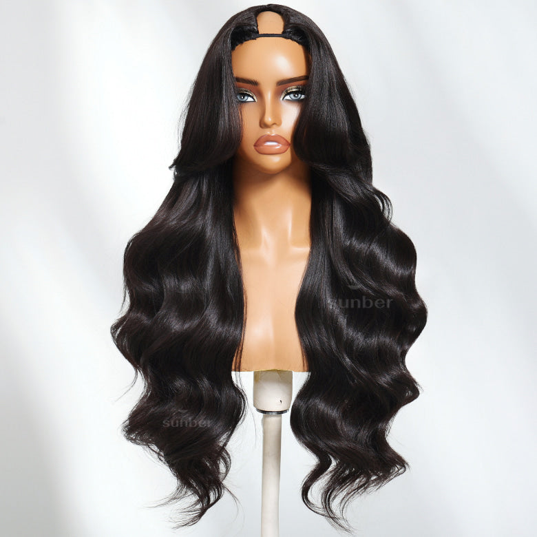 Sunber Yaki Straight V Part Wigs Versatile No Leave Out Glueless Human Hair Flash Sale